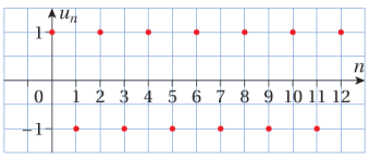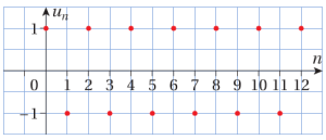 La suite définie par \(u_n=(-1)^n\) alterne entre la valeur -1 et la valeur 1.